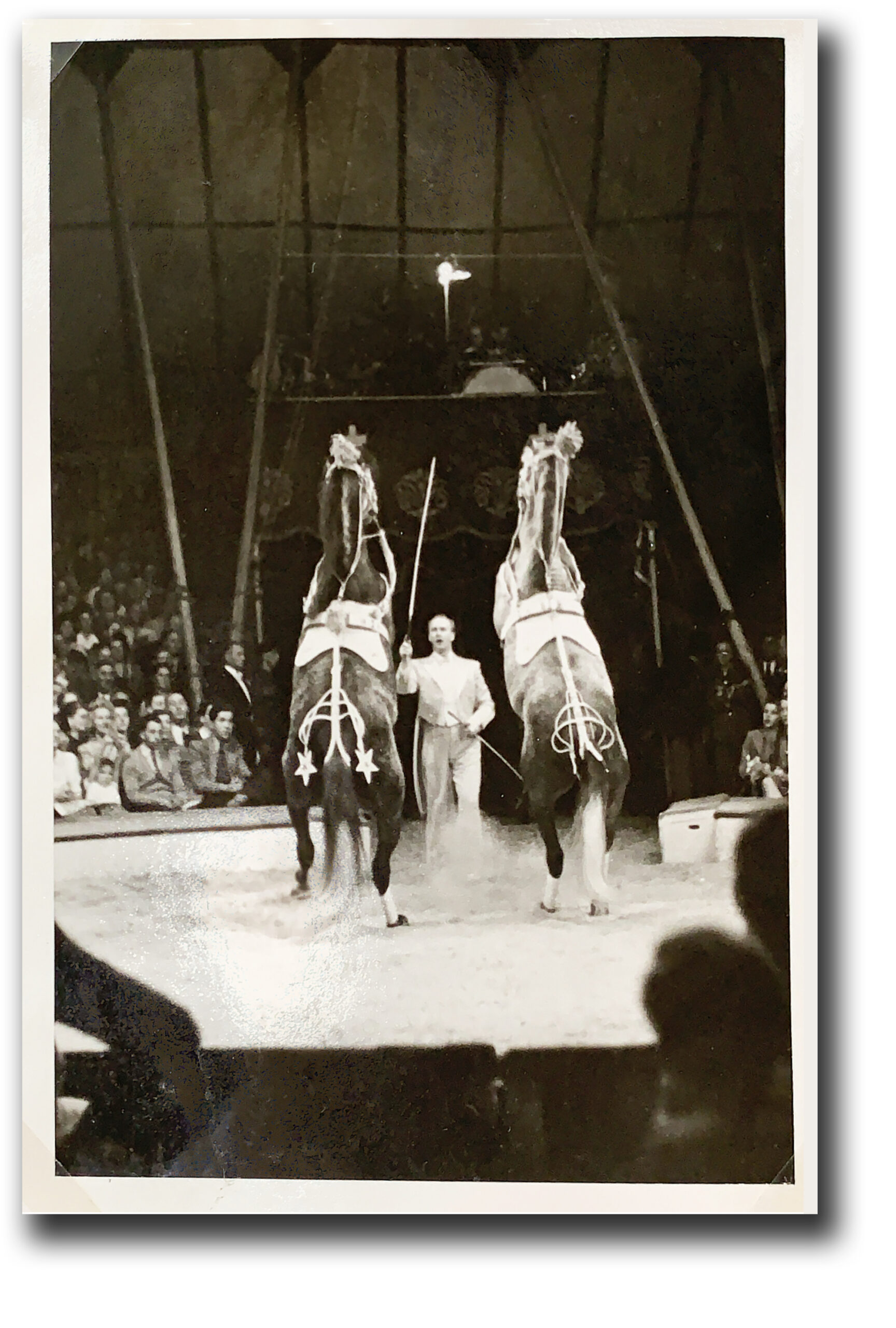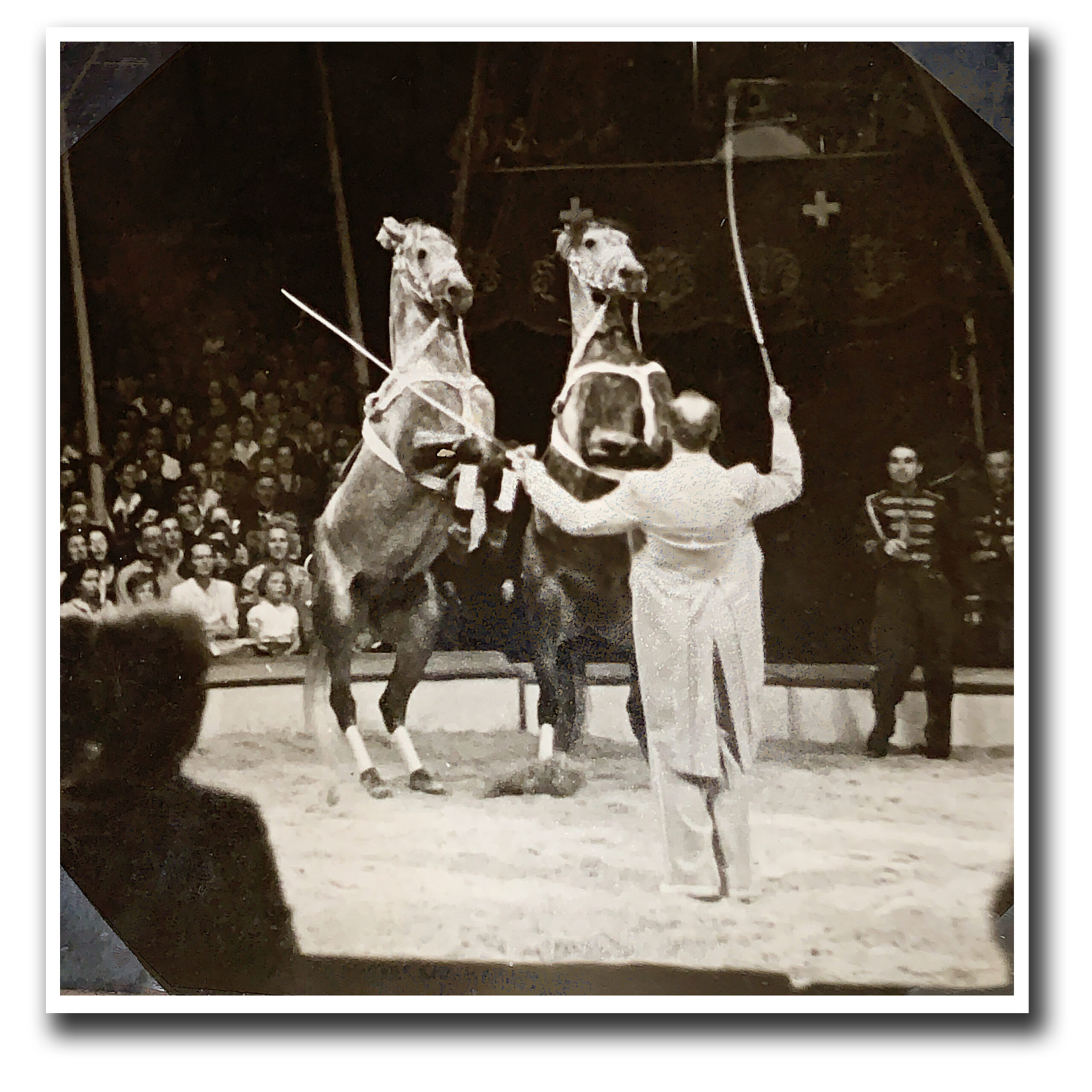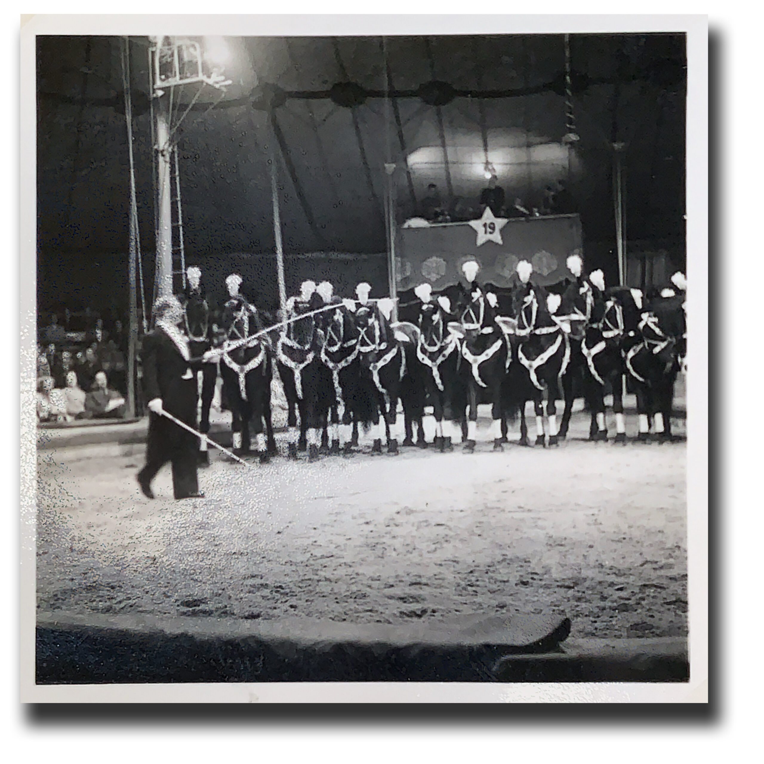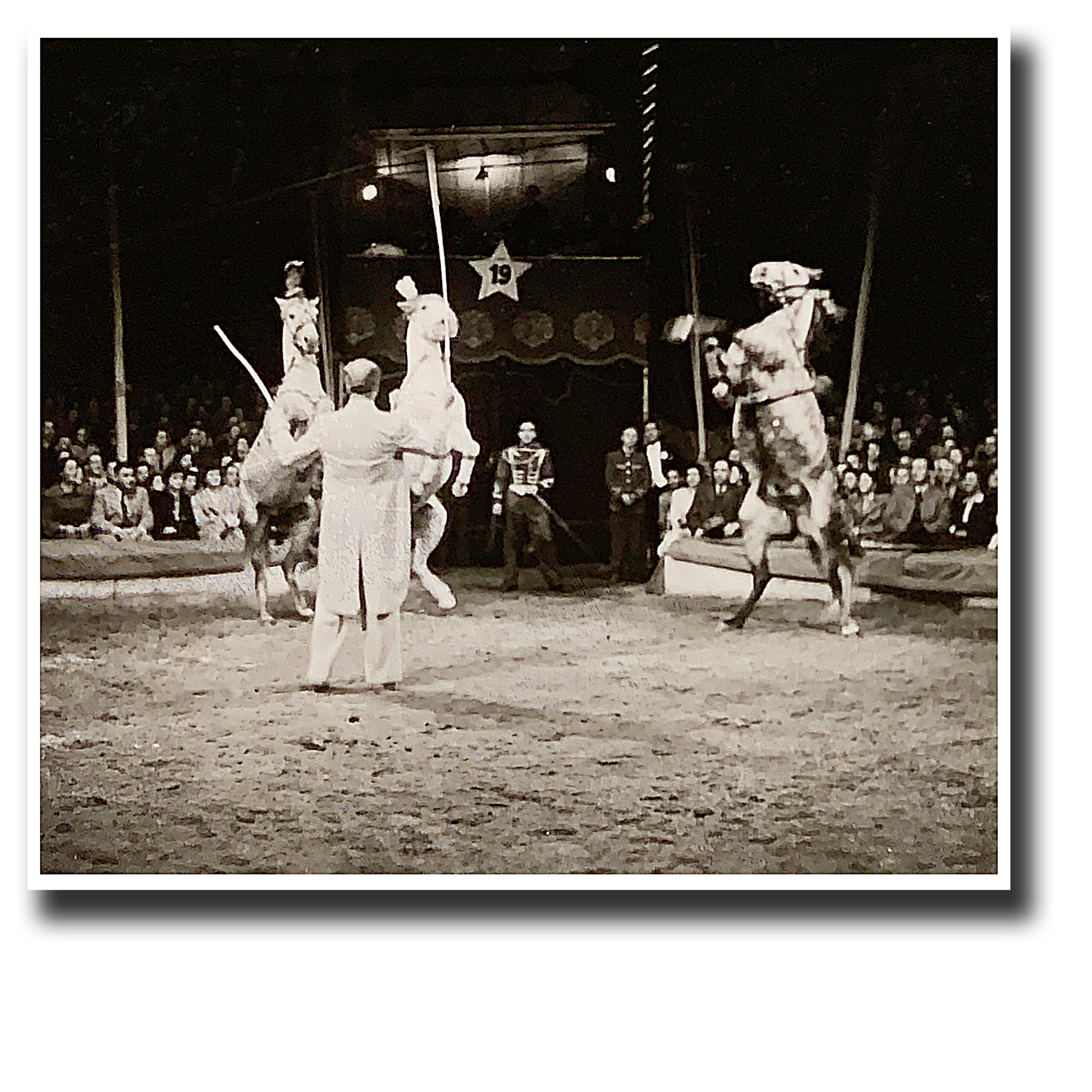 Anmerkung: Bild oben aus der Saison 1947, wo die Pferdefreiheit an 18. Stelle im Programm war!; Friesen als Abliegerpferde zu sehen