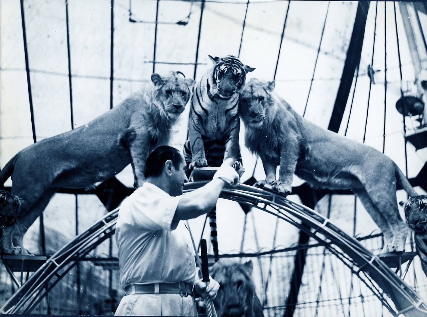 Afrikanische und indische Tiere vereint: 6 Tiere: die männlichen Tiger «Bengali» und «Cambodga», Tiger-Weibchen «Mirza» (alle aus dem selben Wurf 1949) und die Löwenmännchen der hellmähnige «Cäsar» und der dunkelmähnige «Brutus» (beide mit russischer Herkunft, 1948) sowie «Prinz» (1950); Namensschreibweisen von Verhaltensforscher Prof. Dr. Heini Hediger übernommen.
