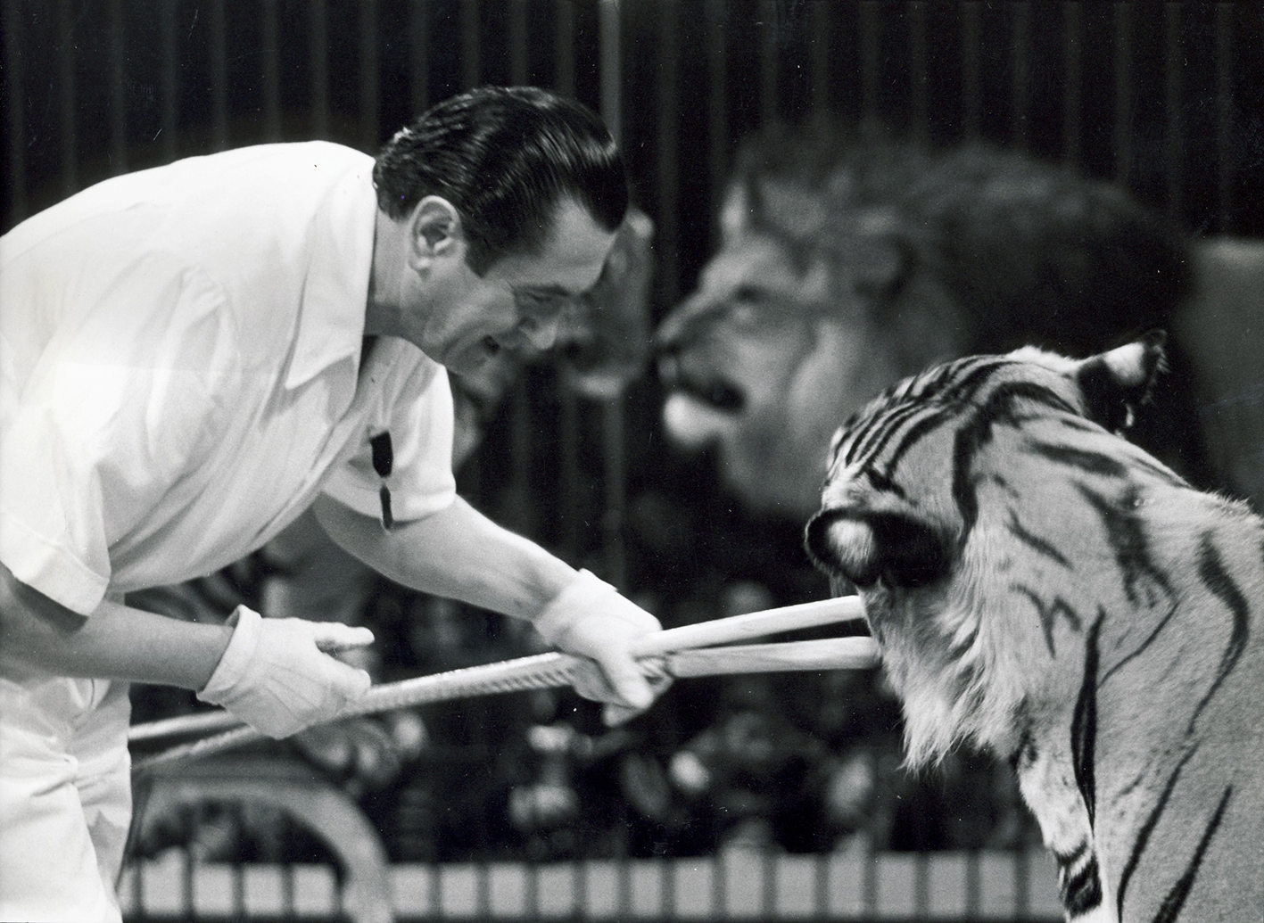 speziell erwähnenswert ist der Schlusstrick: die Tiger «Cambodga», «Bengali» und «Mirza» gehen Schritt für Schritt rückwärts (!) durch die ganze Manège, bis sie den Tunnel erreicht haben!