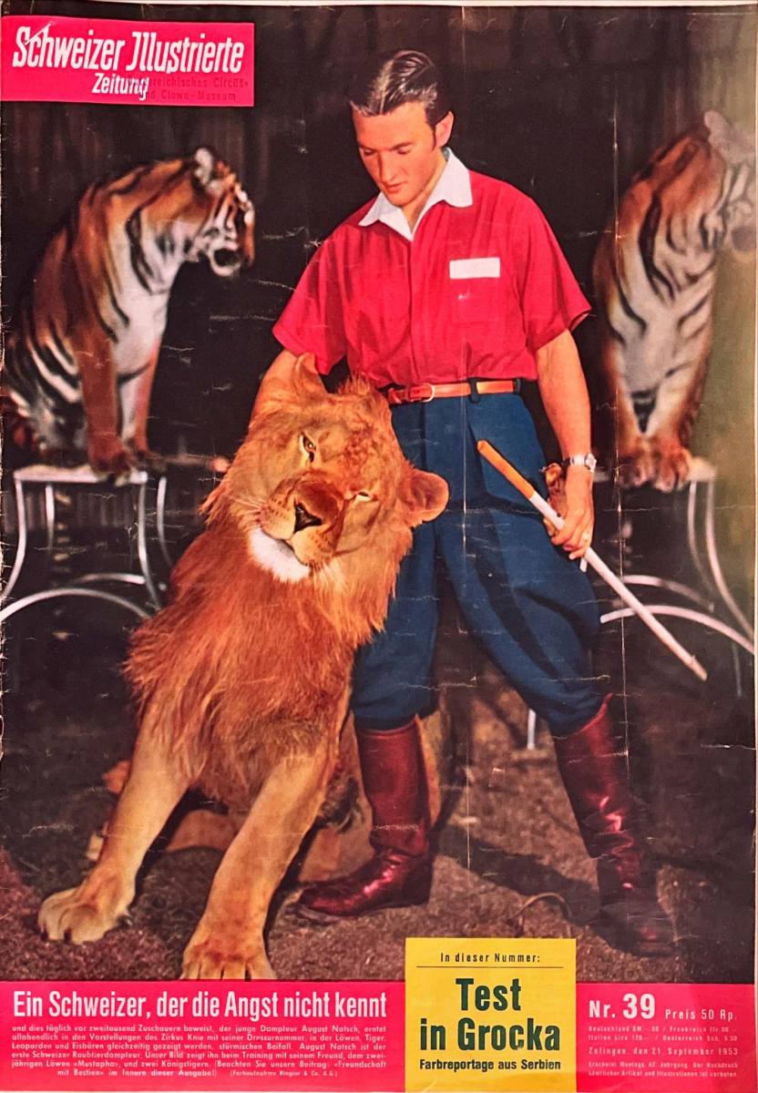 August Natsch’s Autogrammkarte; Mähnenlöwe «Mustapha»