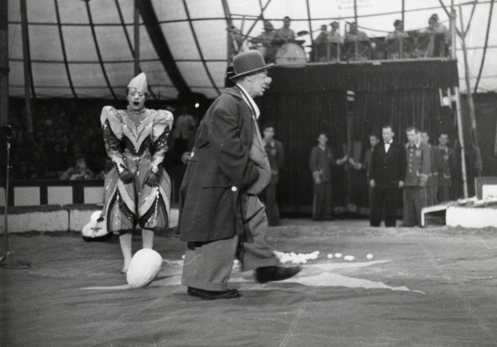 Bild: Freddy als Weissclown, später in der Rolle des 1. Dummen Augusts (Manricos Rolle)