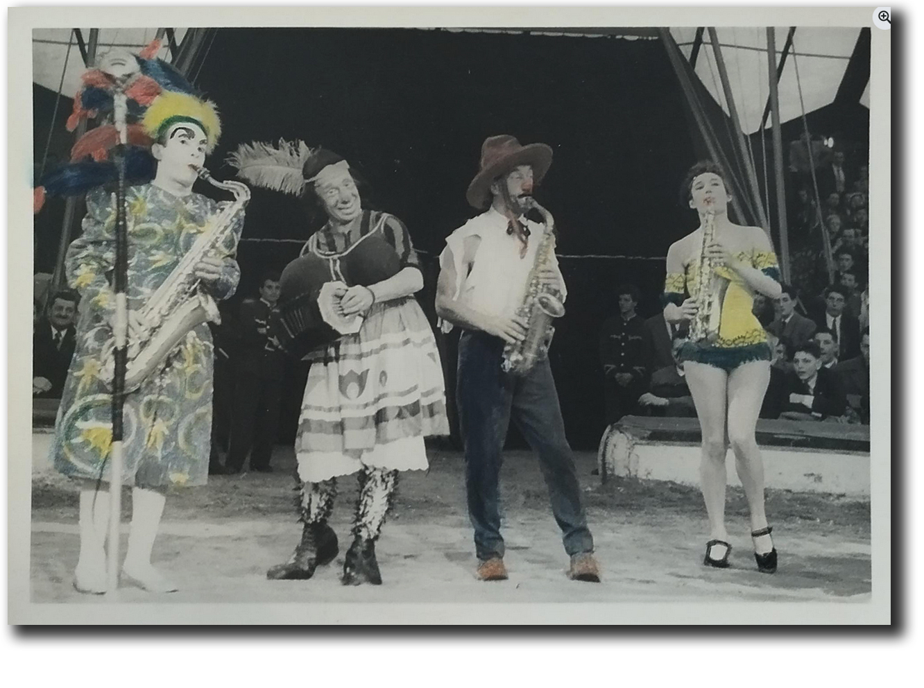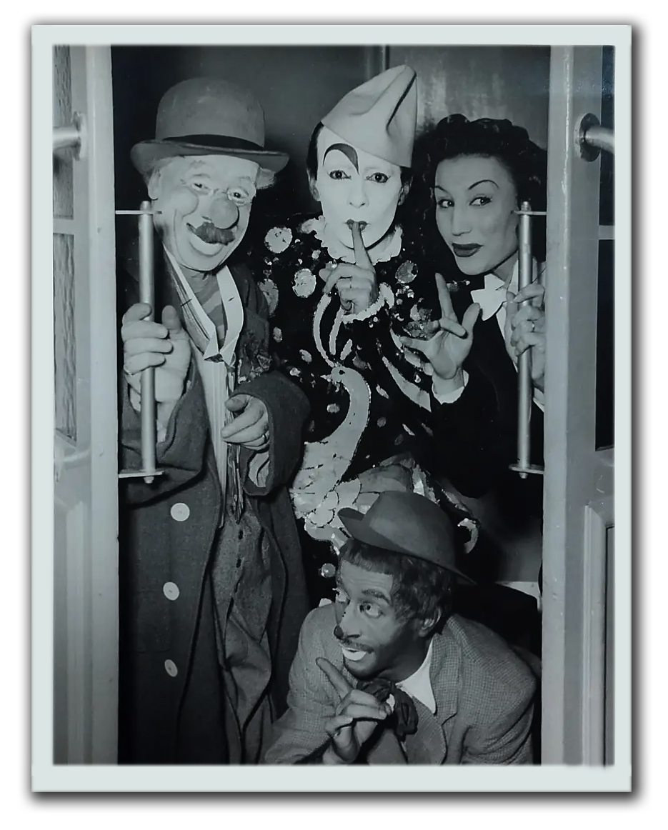 Manrico, Freddy als Weissclown, Henny Bario-Sosman und unten Nello; Epochenbild © Bario Officiel