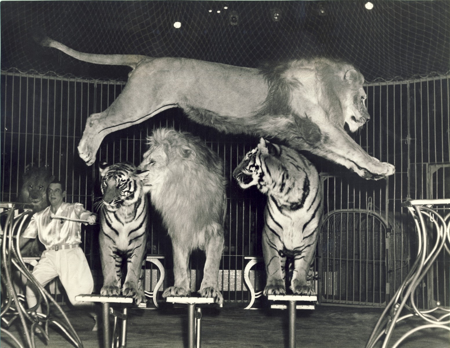 6 Tiere: männliche Tiger «Bengali» und «Cambodga», Tiger-Weibchen «Mirza» (alle aus dem selben Wurf 1949) und die Löwenmännchen der hellmähnige «Cäsar», der dunkelmähnige «Brutus» (beide mit russischer Herkunft, 1948) und «Prinz» (1950); Namensschreibweisen von Verhaltensforscher Prof. Dr. Heini Hediger übernommen.
