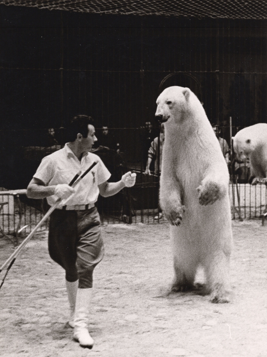 Eugen Weidmann war erst Zeltarbeiter, Requisiteur und Tierpfleger bei KNIE, bevor er Kutscher bei KNIE’s grosser Eis- und Kragenbärgruppe [Vorführung: Joseph Schauer, August W. Natsch u.a.] wurde. Im Winter 1956/57 übernahm Eugen Weidmann die von August Natsch aufgebaute Gemischte.