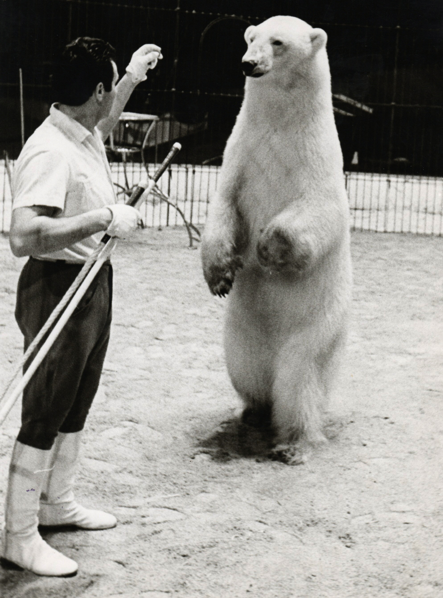Eugen Weidmann war erst Zeltarbeiter, Requisiteur und Tierpfleger bei KNIE, bevor er Kutscher bei KNIE’s grosser Eis- und Kragenbärgruppe [Vorführung: Joseph Schauer, August W. Natsch u.a.] wurde. Im Winter 1956/57 übernahm Eugen Weidmann die von August Natsch aufgebaute Gemischte.