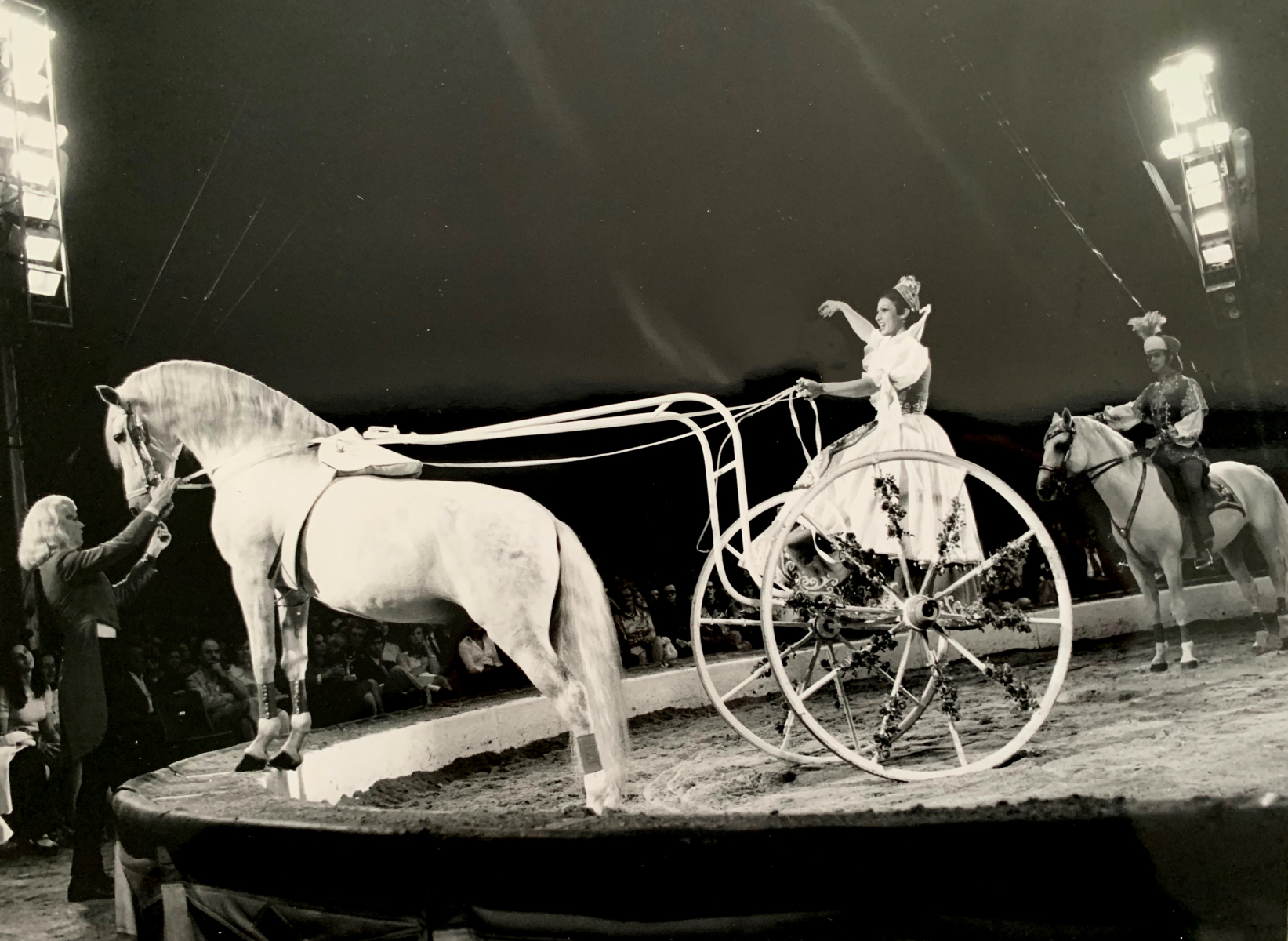 Herren auf Lipizzanern, Erica auf «Provinciano» im Damensattel, Mary-José im Wagen, den «Parzi» zieht. (Bild)