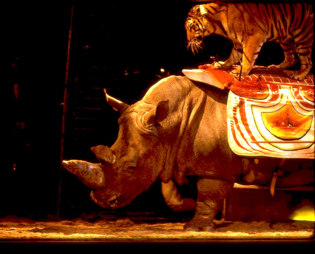 Fredy Knie jun. Bengaltiger «Sher» und «Bombay», Breitmaul-Nashorn «Zeila»