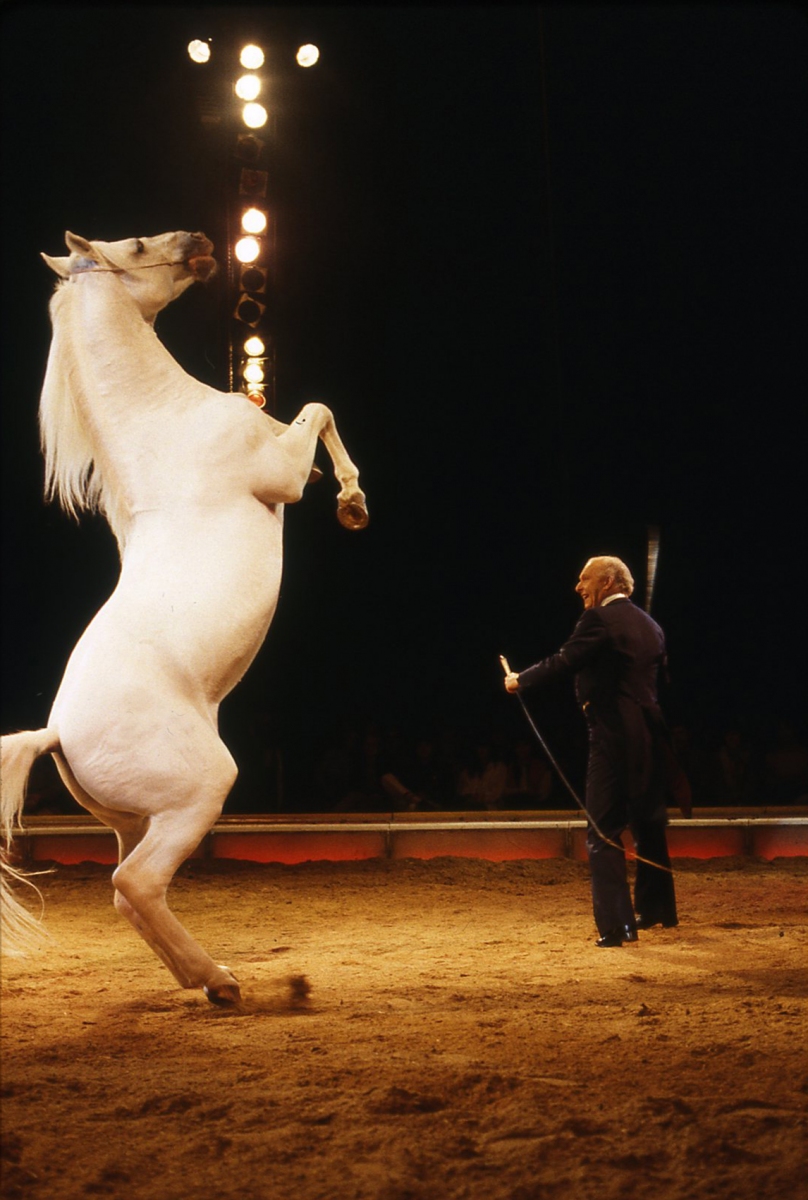 Fredy Knie sen. mit dem 12er Zug Lipizzaner in der legendären Freiheitsdressur! Wiederaufnahme von 1977.