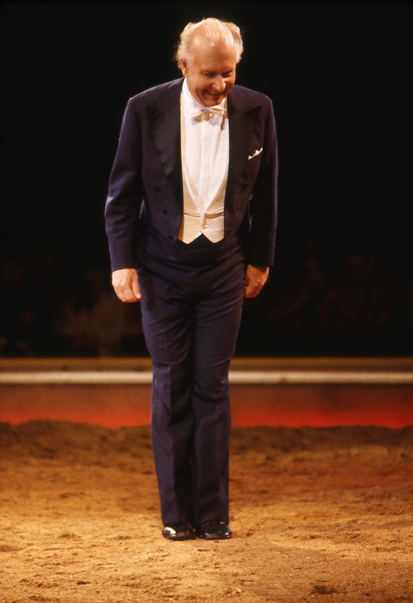 Fredy Knie sen. mit dem 12er Zug Lipizzaner in der legendären Freiheitsdressur! Wiederaufnahme von 1977.