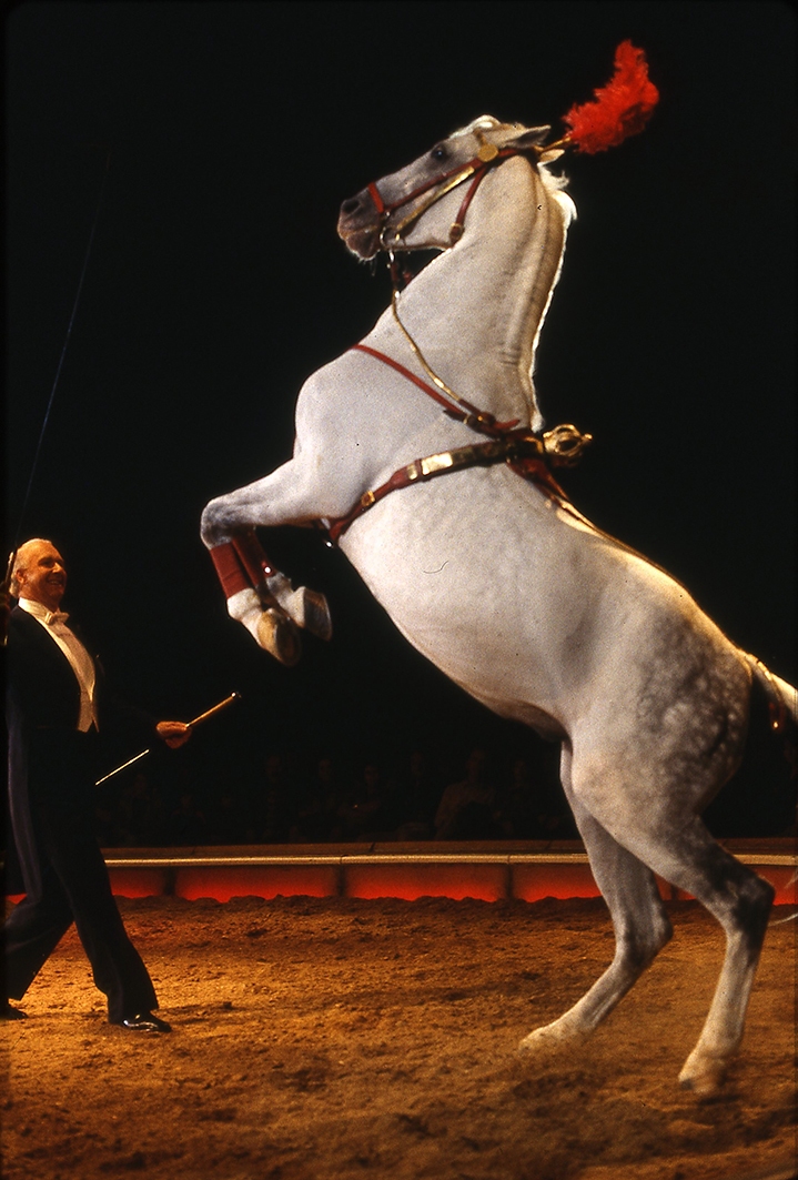 Fredy Knie sen. mit dem 12er Zug Lipizzaner in der legendären Freiheitsdressur! Wiederaufnahme von 1977.