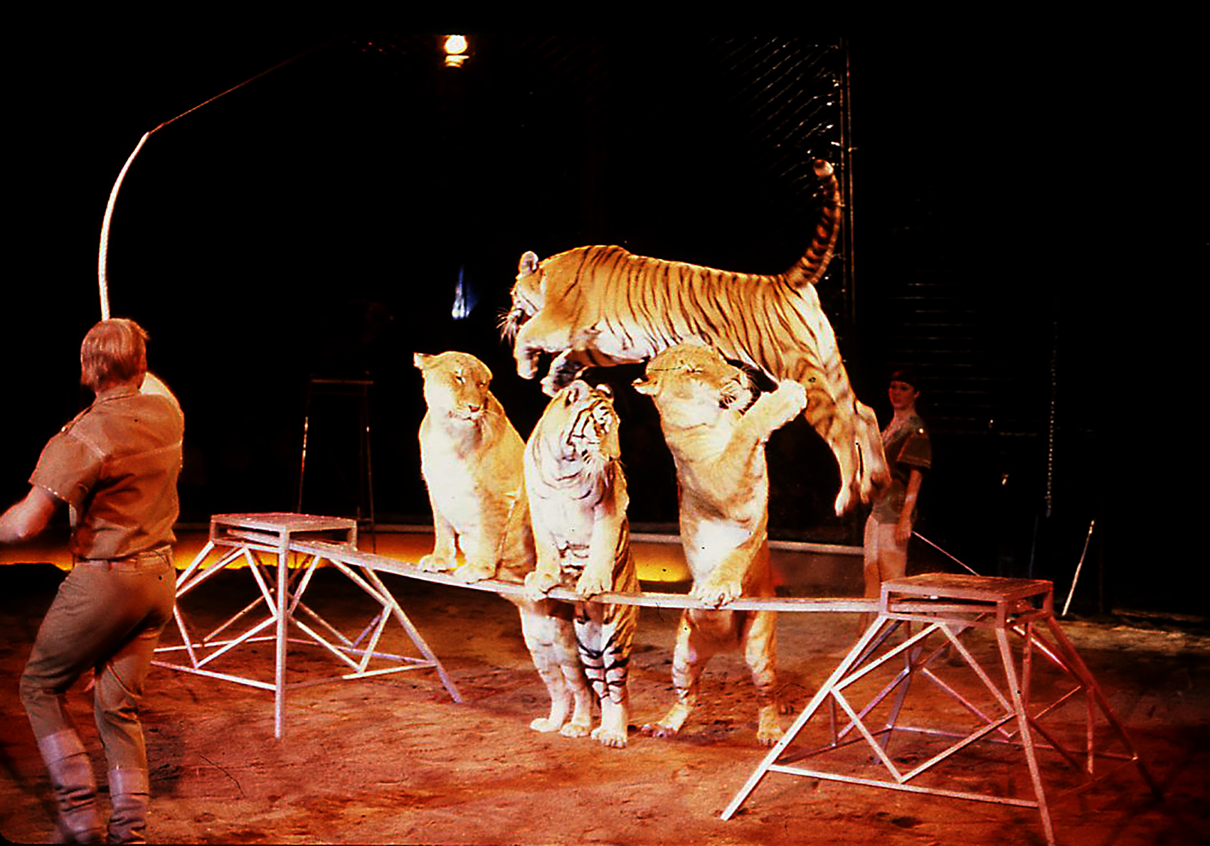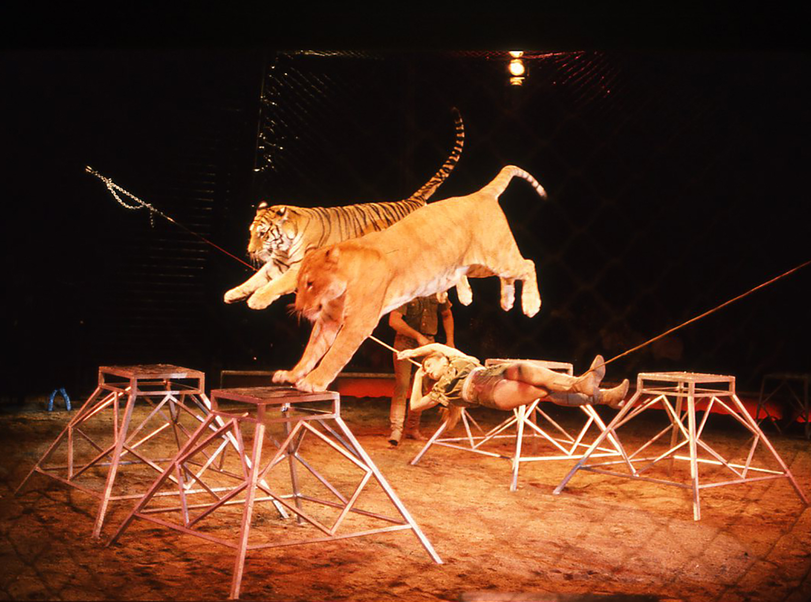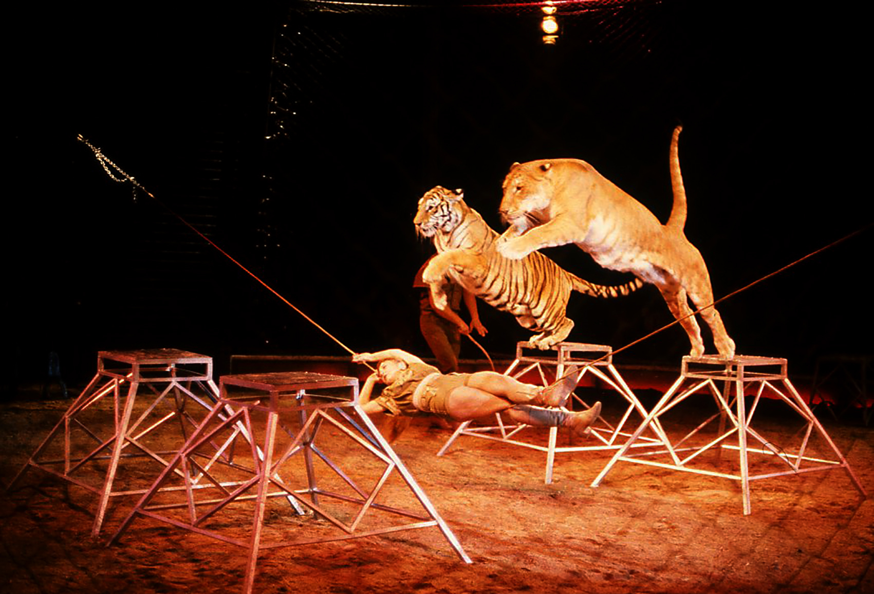 Bengaltiger, Leopard, schwarzer Panther, Puma, Eis-, Braun- und Kragenbär, sowie 2 Liger;