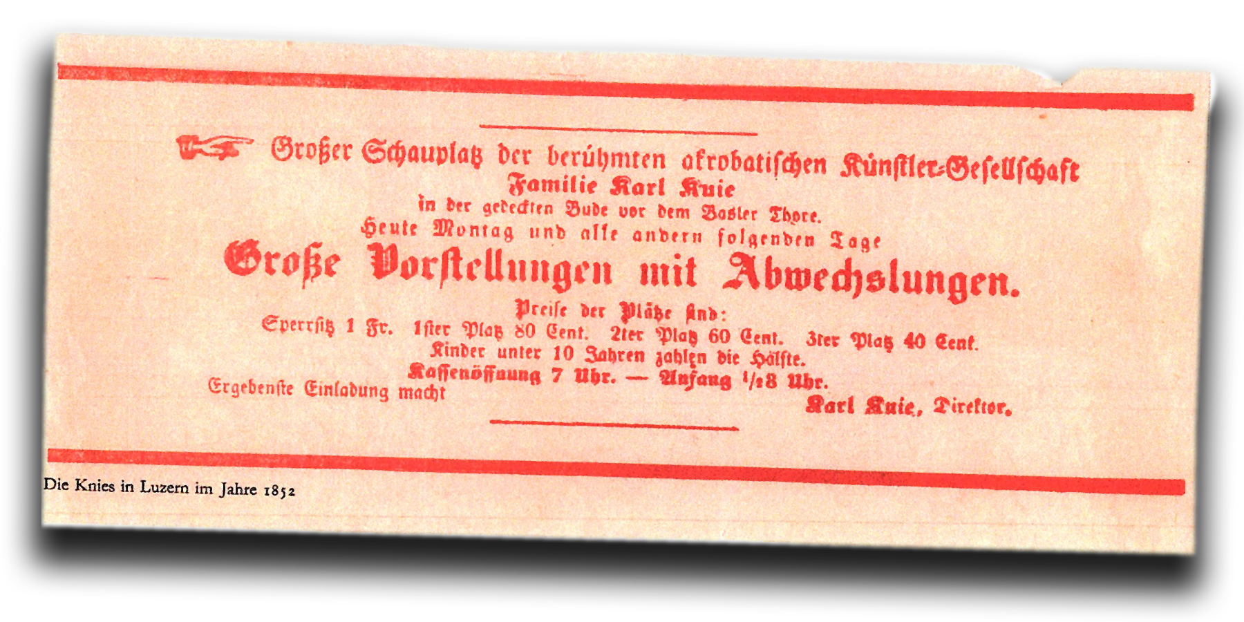 2. Generation: Johann Karl Knie · Annonce für Luzern 1852