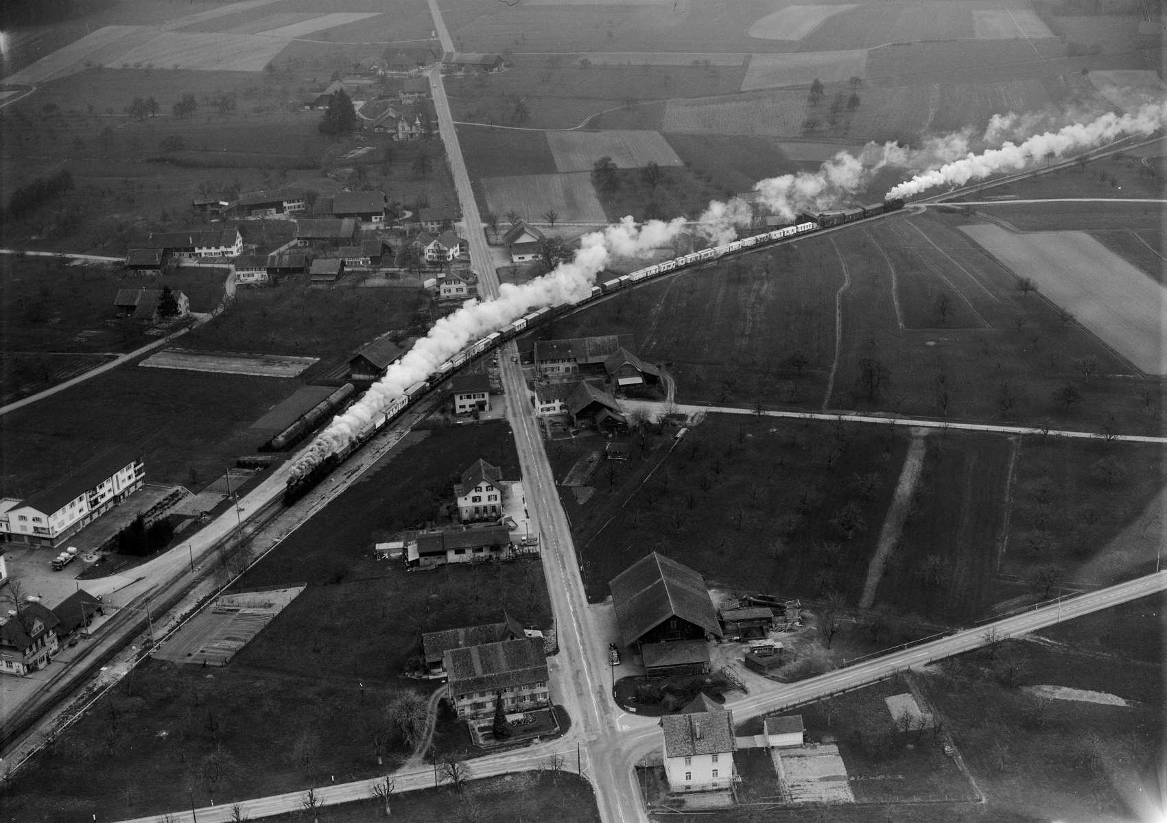 1927 konnte Rorschach SG am Bodensee von Rapperswil aus nicht auf direktem Weg durch den Ricken-Tunnel angepeilt werden, hier waren nur 200 Tonnen erlaubt. Die Fracht wog jedoch mit 68 Salon-, Tier-, Material- und Bürowagen auf 38 Loren satte 500 Tonnen. Eine zweite Dampflokomotive hätte zu viel Qualm erzeugt… Ein Jahr später wurde die Strecke elektrifiziert.
