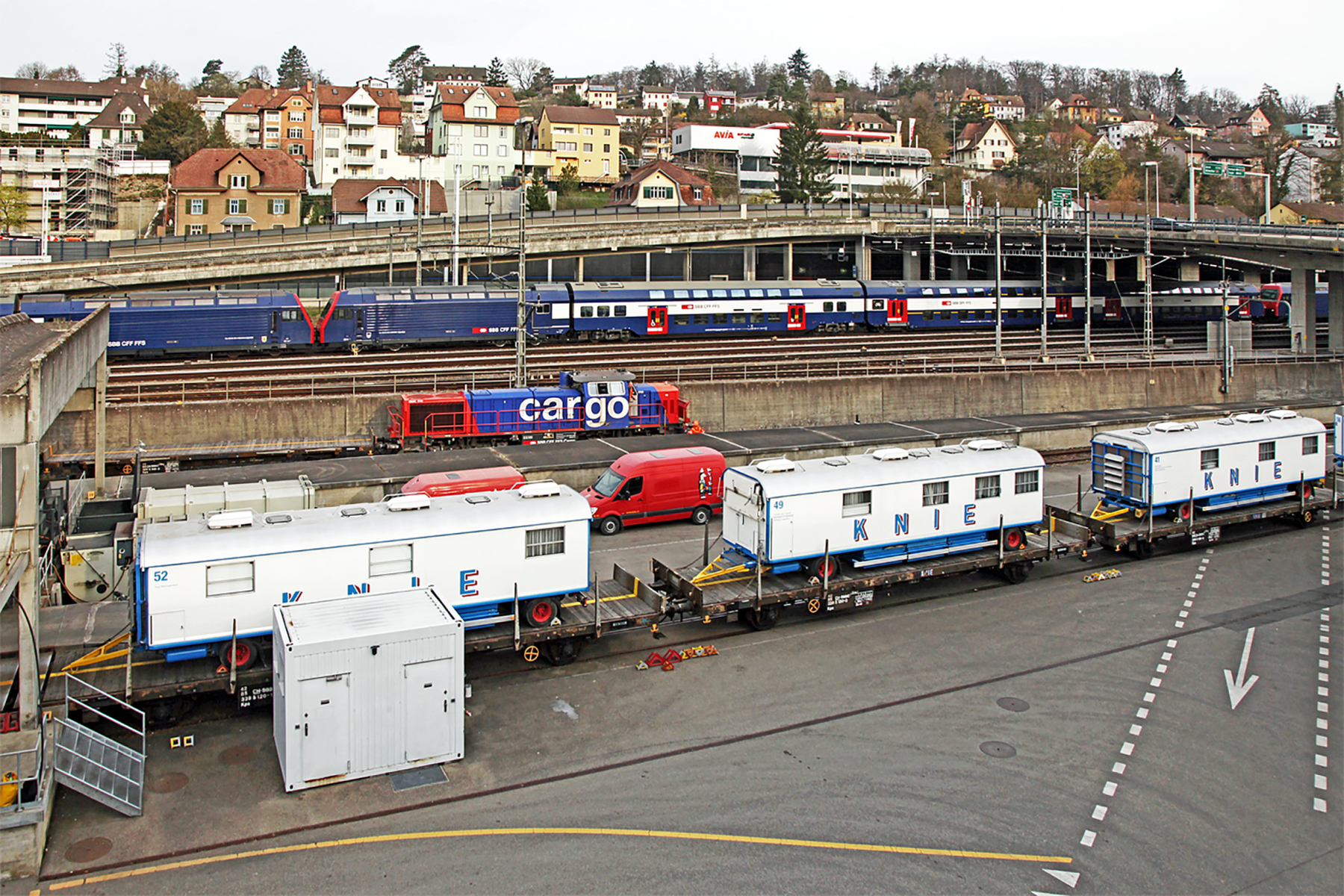 Zum allerletzten Mal dislozierte KNIE am 8. Januar 2023 per Bahn von Luzern nach Rapperswil SG. Dies ist das endgültige Ende des legendären KNIE-Zuges. Sukzessive war die Umstellung auf die Strasse gerade bei den Tiertransporten festzustellen: 2006 für Exoten, Ponys, Kamele, Pferde und Elefanten.