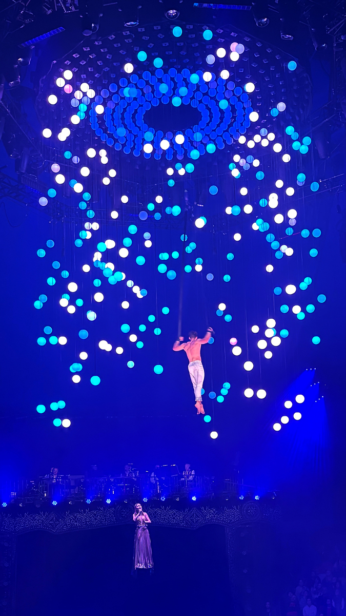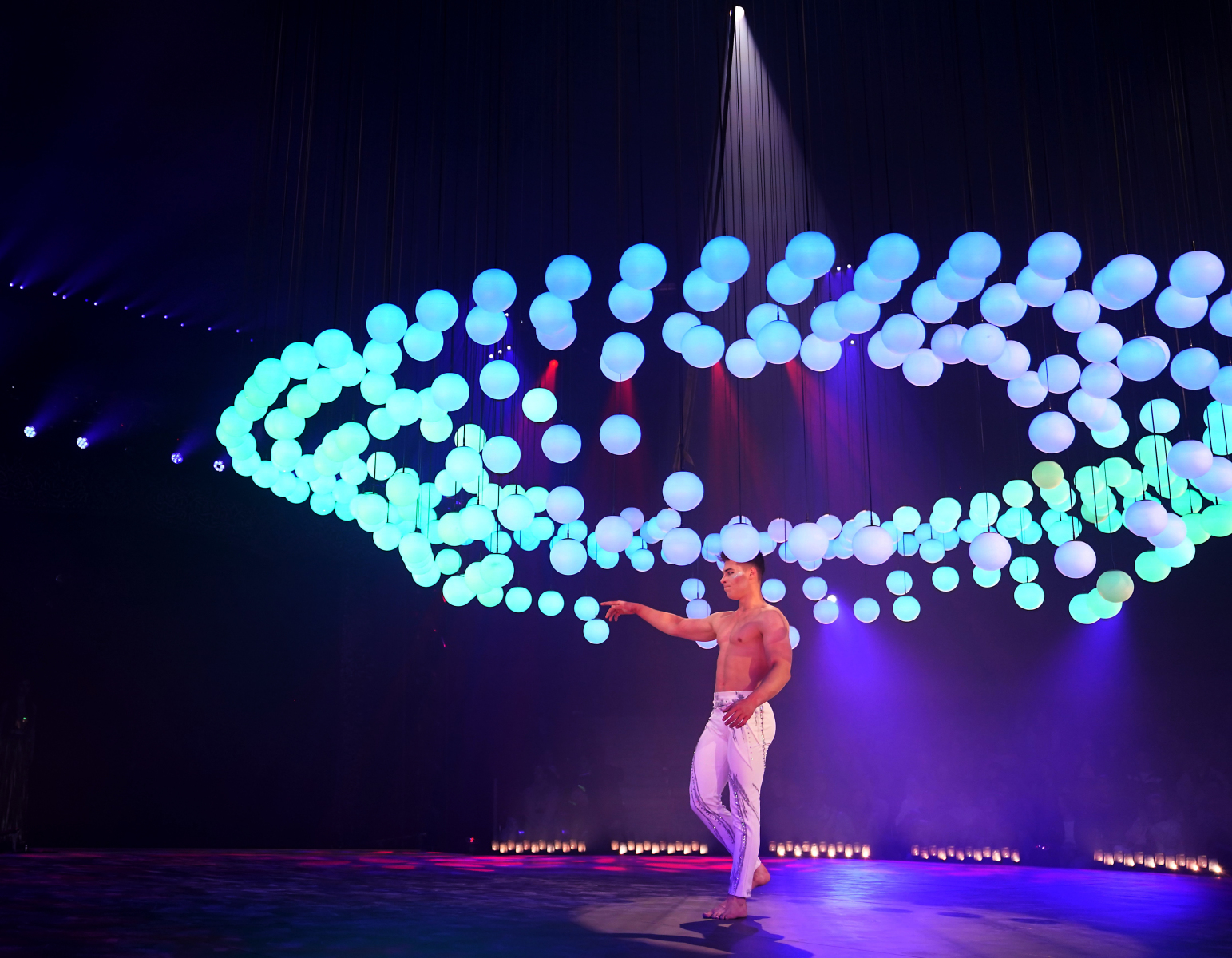 Kinetic Lights, auch: Kinetic Balls: So nennen sich die vertikal bewegbaren Lichter, welche Circus KNIE dieses Jahr als neue technische Innovation präsentiert. Unter der Circuskuppel wurden LED-Lichter installiert, die sich in der Vertikalen nach oben und unten bewegen lassen. Dabei entstehen wellen- und kreisförmige Bewegungen, die faszinierende Szenografien ermöglichen.