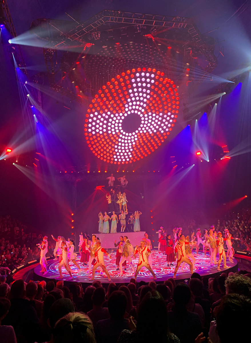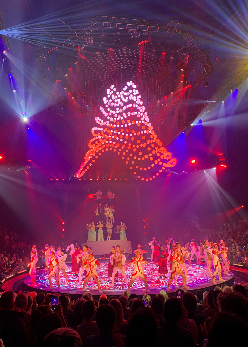 LED-Boden: Der komplett mit LED-Leuchtfeldern ausgestattete Bühnenboden bietet die einzigartige Gelegenheit, mit unterschiedlichsten Licht- und Bildeffekten auf das Geschehen in der Manege einzugehen.