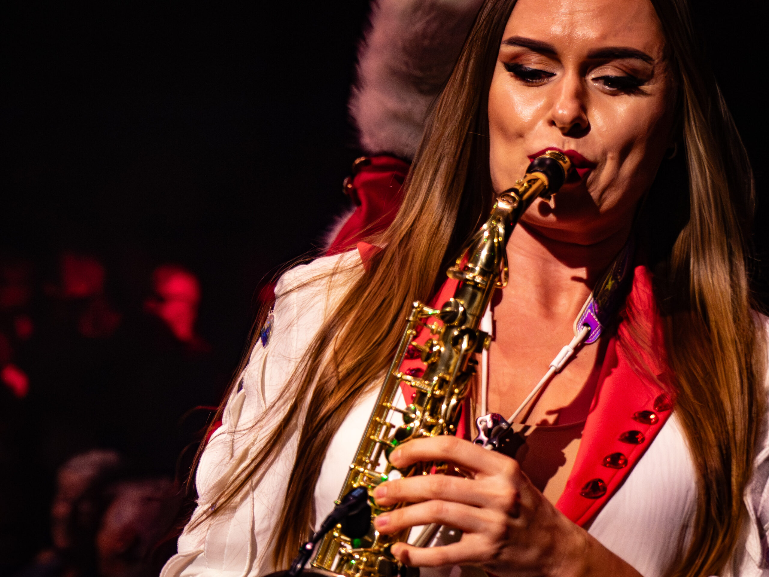 Saxophonistin und Sängerin mit diversen Auftritten: