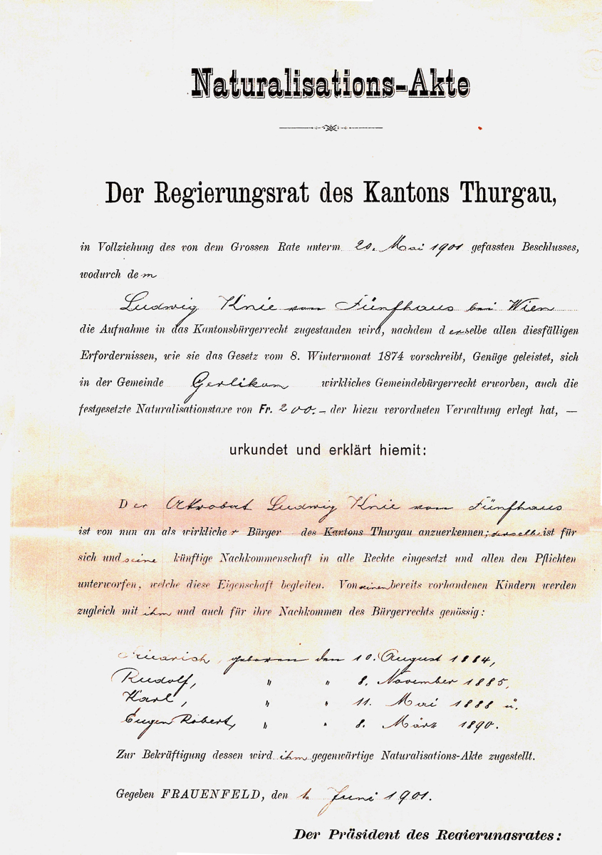 3. Generation: Bestätigung der Einbürgerung durch den Thurgauer Regierungsrat; Seite 1