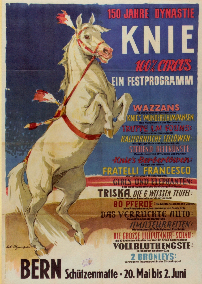 Edouard Elzingre, Flugblatt, Flyer, Galerie, Hans Schoellhorn, KNIE-Illustrierte, Plakate
