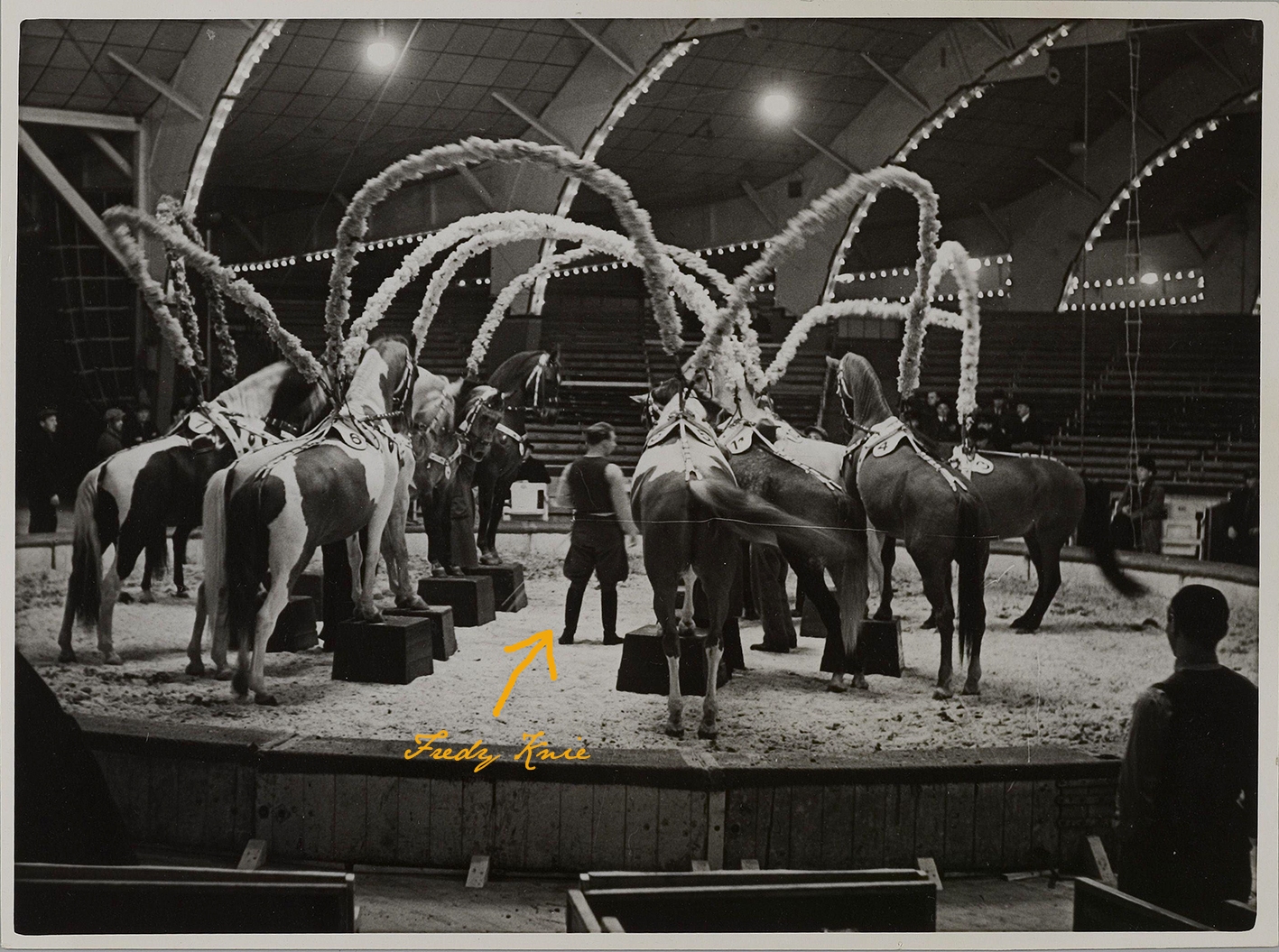 Video-Perle: Hohe Schule mit Herrn Fredy und Ballerina Trude Stosch (!) im R.A.I.-Gebouw Amsterdam 1938/39 ab 1 min 2 sec.; zudem Kunstreiterei von Herrn Fredy Knie sen. mit Alfred «Dudy» Leon und Reserl Smith-Fontner;