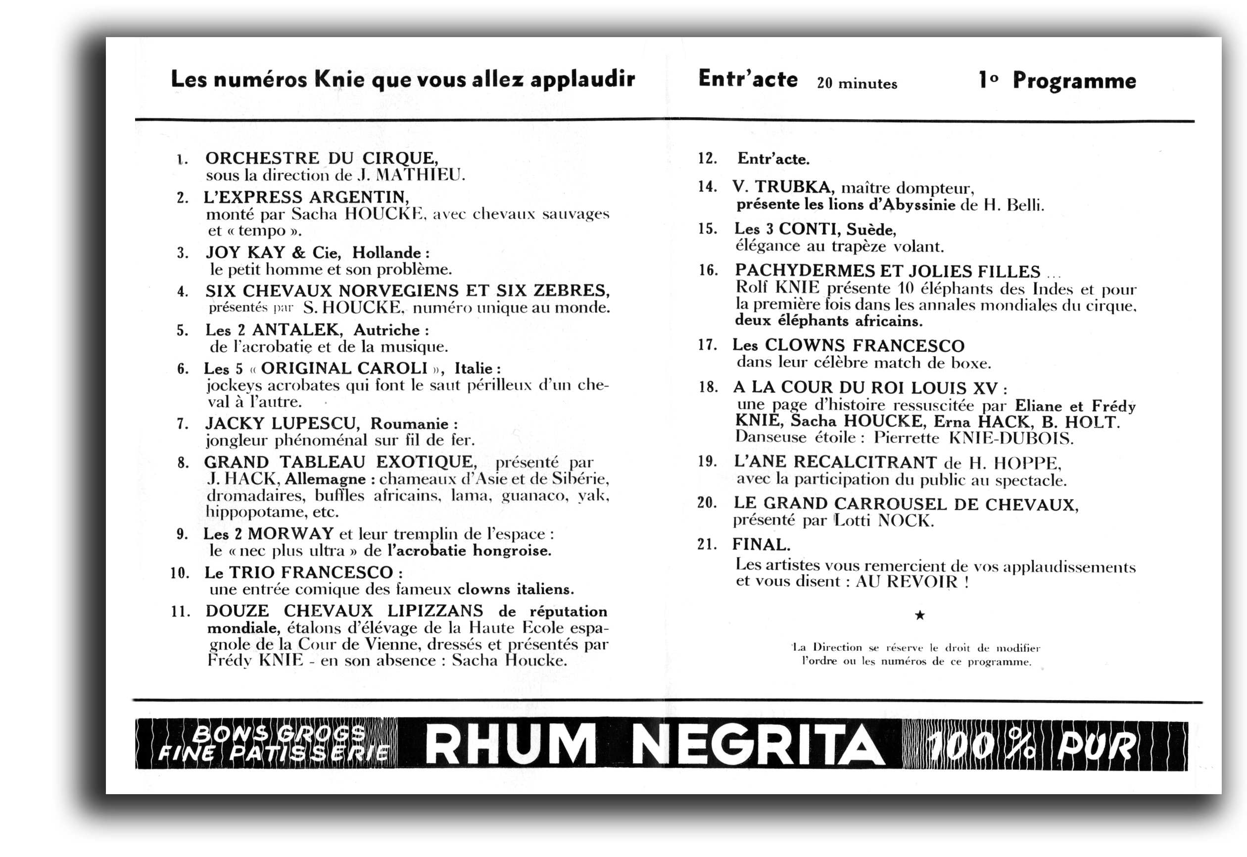 Wintergastspiel Cirque ROYAL Bruxelles, ab 19. Dezember bis Ende Januar 1959