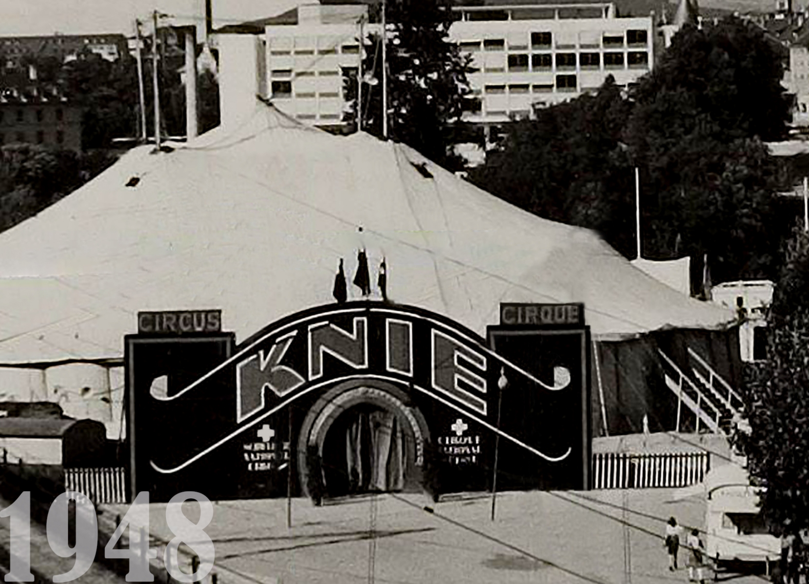 Basel, Bern, Carl Zuckmayer, Eugène Fauquex, Fassade, Genève, Hans Schoellhorn, Haupteingang, Hauptportal, Hugo Siegrist, Interlaken, Katharina Knie, Lausanne, Schaffhausen, Winterthur, Zürich