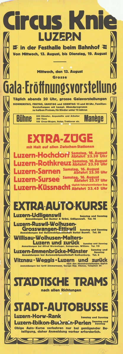 Bahnplakate, Galerie, KNIE-Illustrierte, Luzern, Plakate, Zooführer