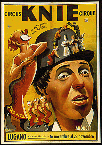 Andreff, Galerie, KNIE-Illustrierte, Lugano, Plakate, Rivels