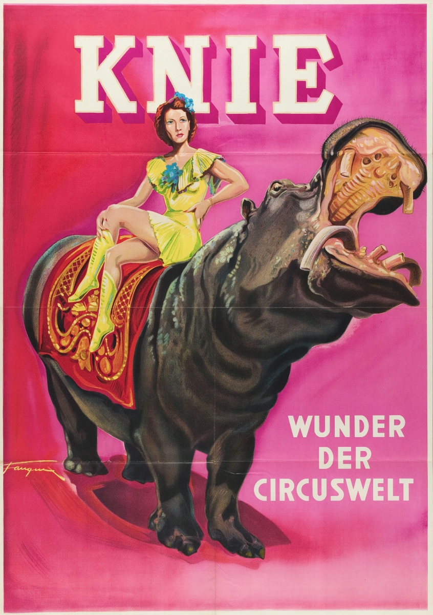 Plakat 1953; Création: Eugène Fauquex (1905-1987), eigtl. Eugen Ludwig Sujet: Eliane Knie mit Nilpferddame «Juba»