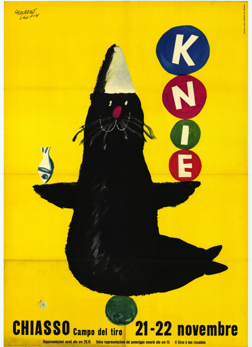 Bahnplakate, Bruno Vetterli, Galerie, Herbert Leupin, KNIE-Illustrierte, Lugano, Plakate, Trio Francesco