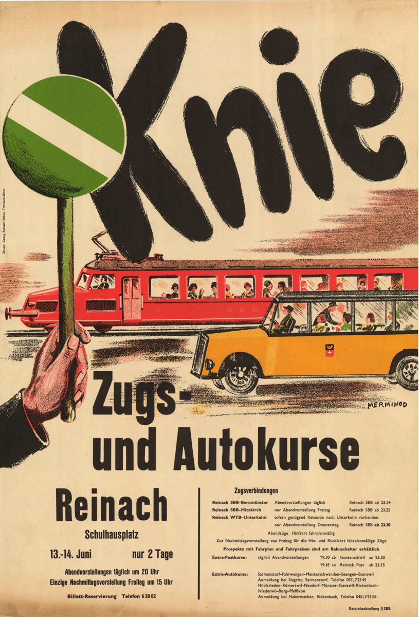 Bahnplakate, Bruno Vetterli, Galerie, Herbert Leupin, KNIE-Illustrierte, Lugano, Plakate, Trio Francesco