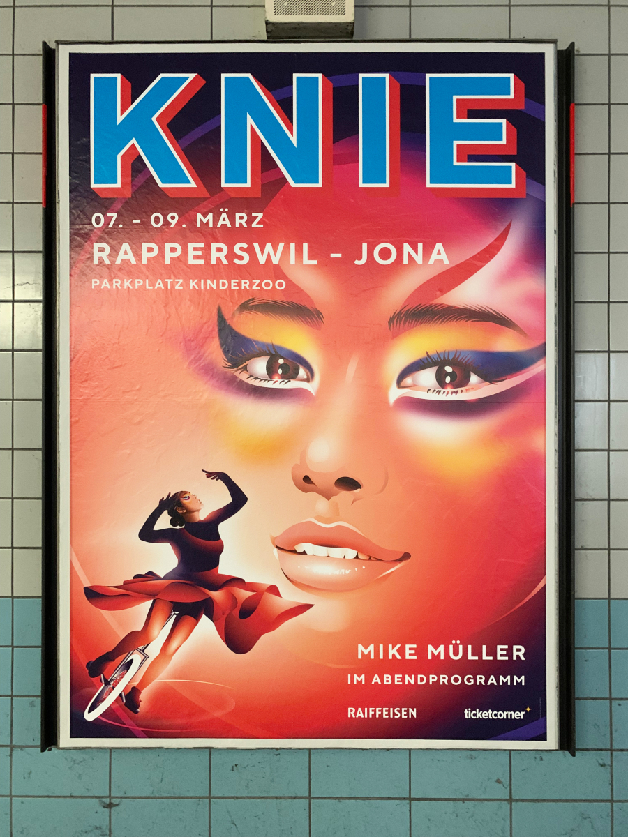 Flyer, KNIE-Illustrierte, KNIE-Magazin, Kreuzlingen, Marie-Thérèse Porchet, Mike Müller, Mirko Noser, Plakate, St.Gallen, Viktor Giacobbo, Winterthur, Zürich