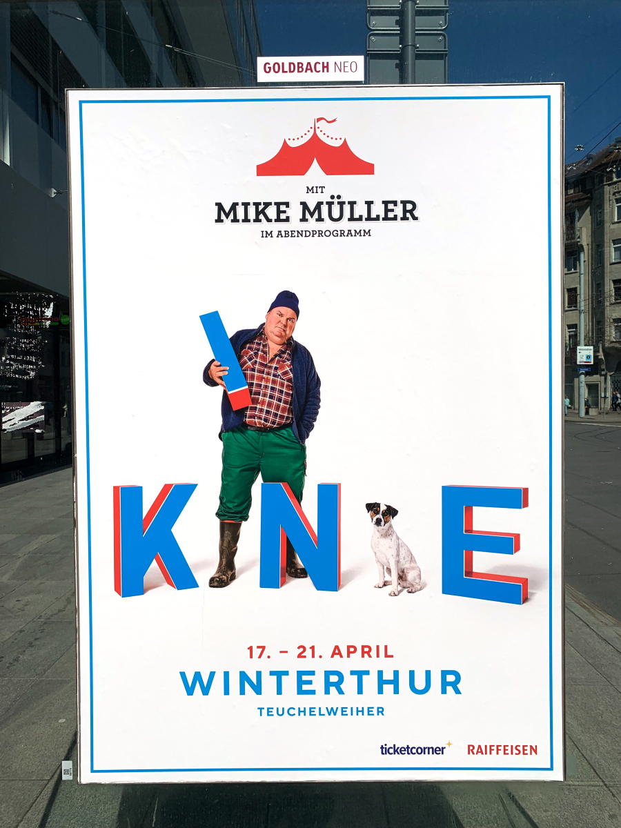 Flyer, KNIE-Illustrierte, KNIE-Magazin, Kreuzlingen, Marie-Thérèse Porchet, Mike Müller, Mirko Noser, Plakate, St.Gallen, Viktor Giacobbo, Winterthur, Zürich