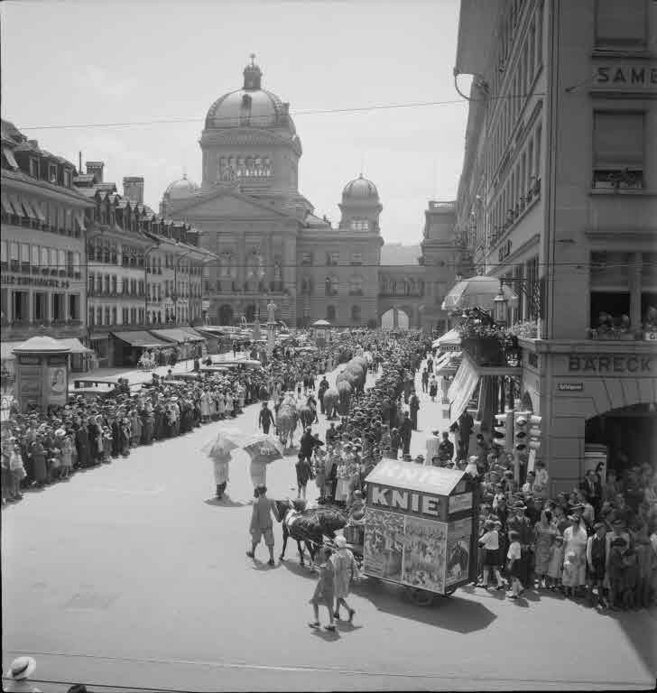 Zirkus Knie: Festzug, Thema "Olympia", B?renplatz, Bundeshaus