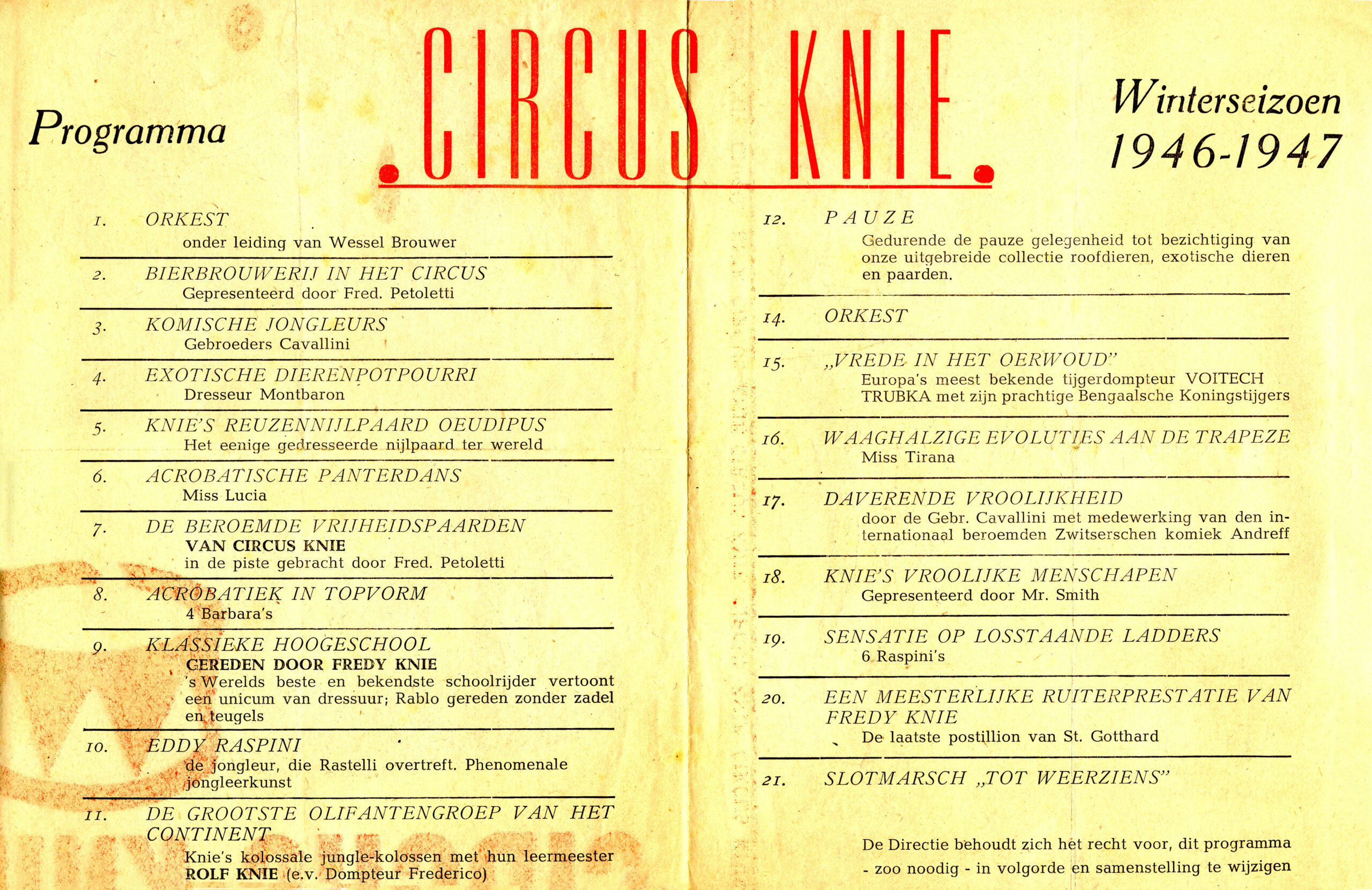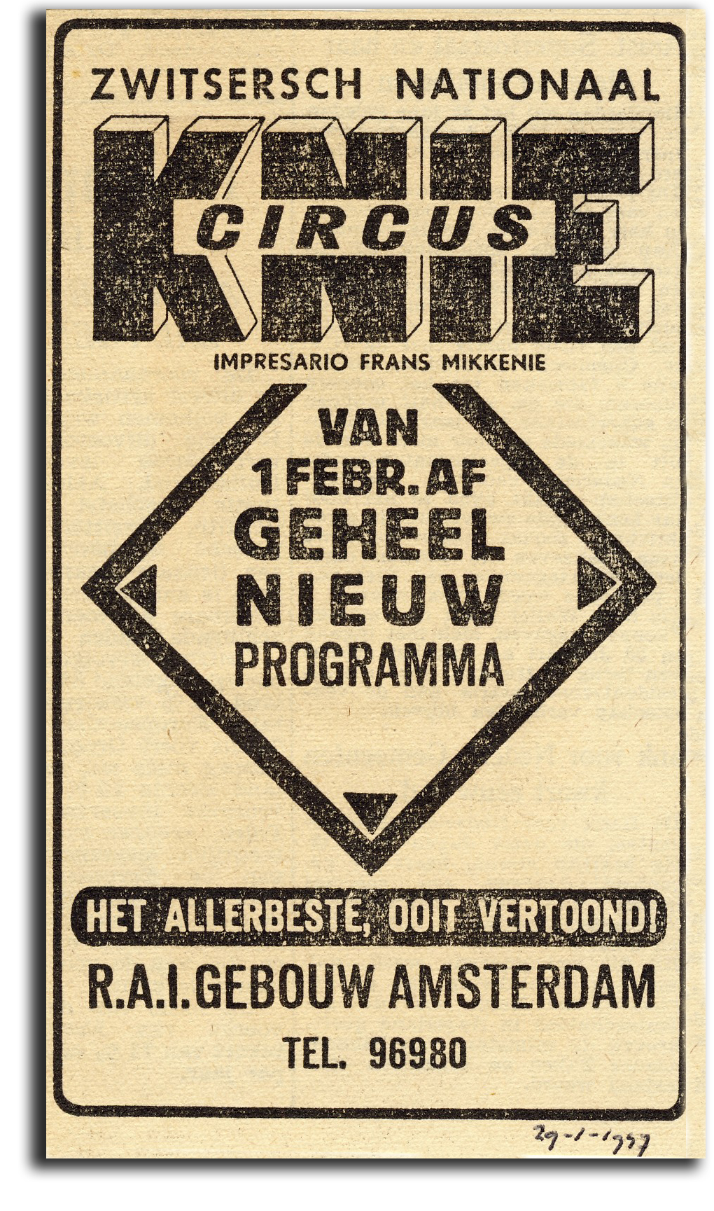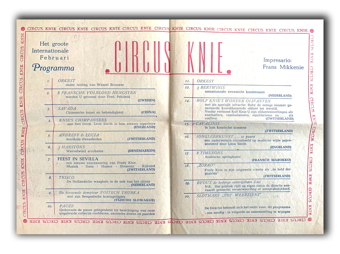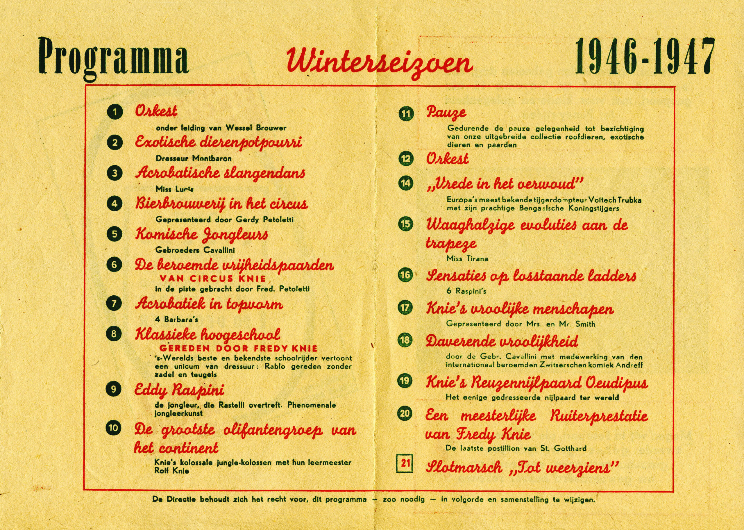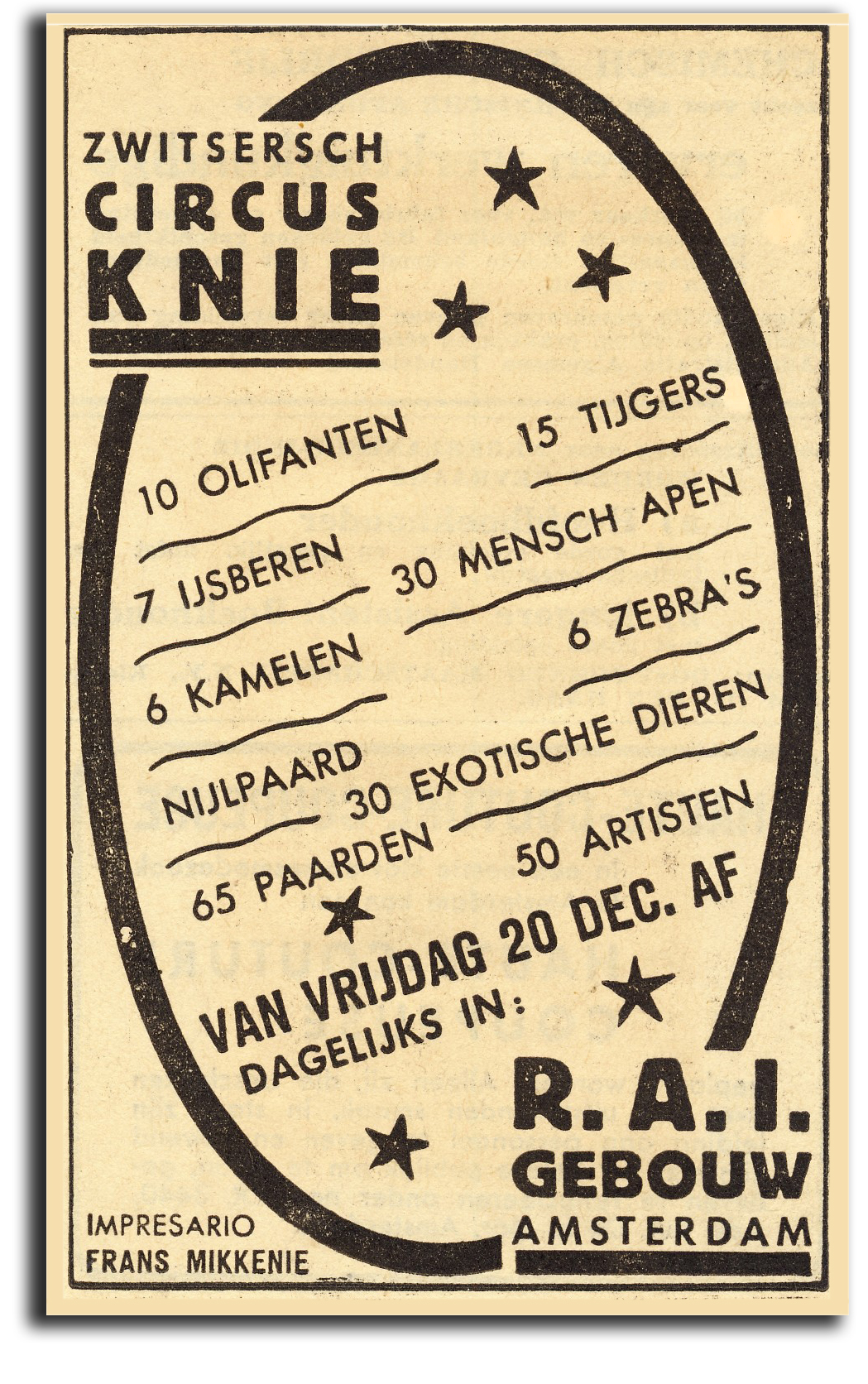 Circus KNIE gastiert ab 20. Dezember 1946 bis 9.März 1947 im R.A.I. -Gebouw Amsterdam:
