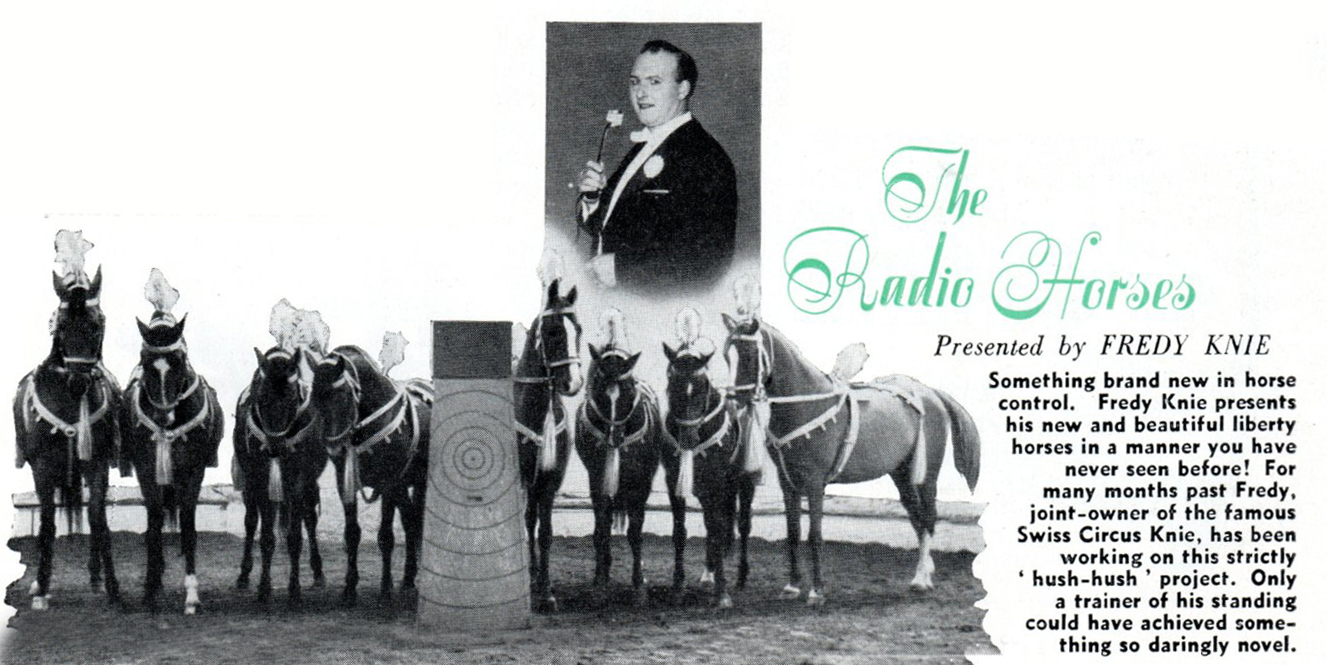 Fredy Knie sen. zeigt seine Radio-Pferde über Weihnachten/Neujahr bei BERTRAM MILLS in der Olympia-Hall London (1953/54).