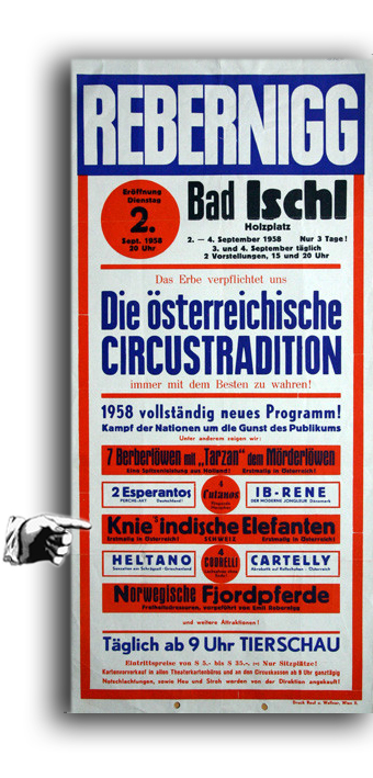 Die Sommersaison 1958 verbringt das Ehepaar Rupert & Mecky Bemmerl in Oesterreich: die beiden präsentieren asiatische Knie-Elefanten
