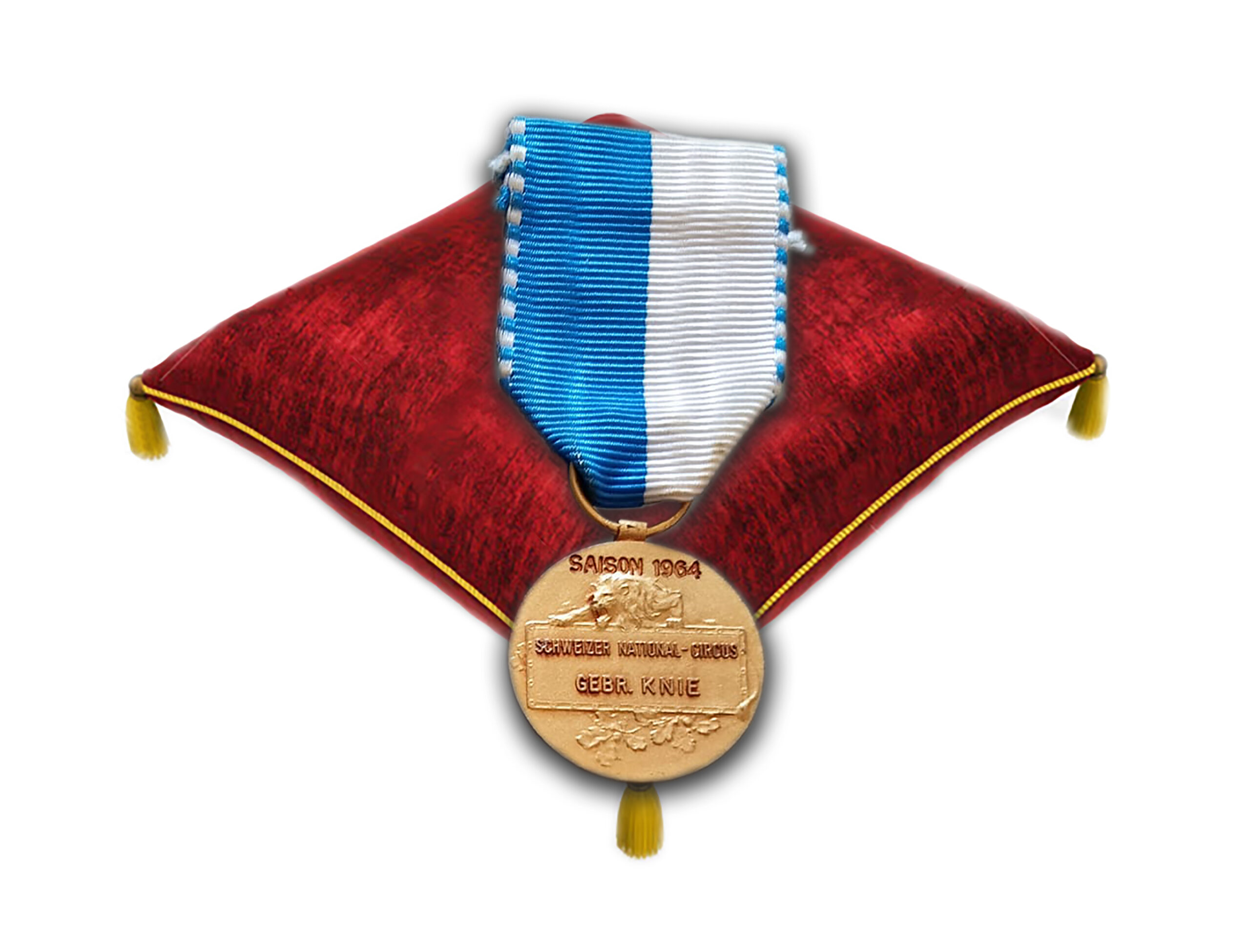 Goldene Medaille 1964 für die Artisten der Saison 1964; ausgehändigt durch Mitglieder der Familie KNIE beim letzten Finale.