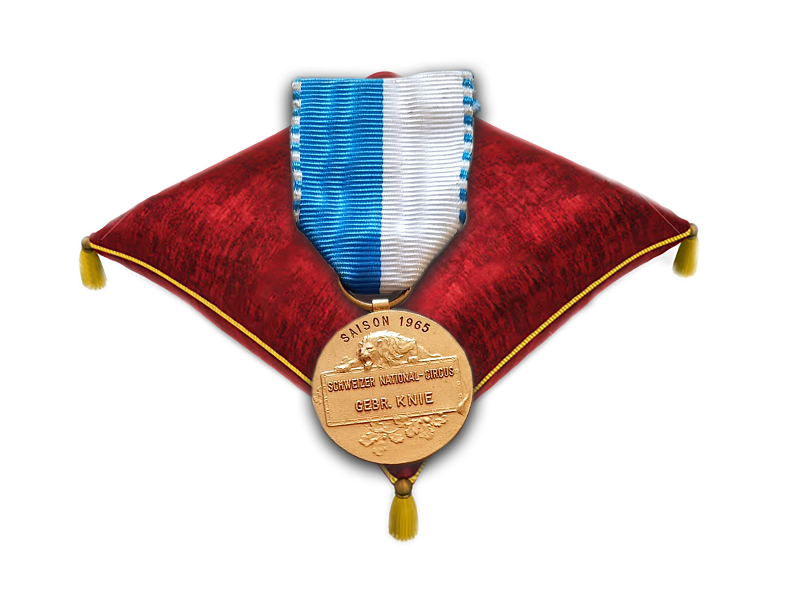 Goldene Medaille 1965 für die Artisten der Saison 1965; ausgehändigt durch Mitglieder der Familie KNIE beim letzten Finale.