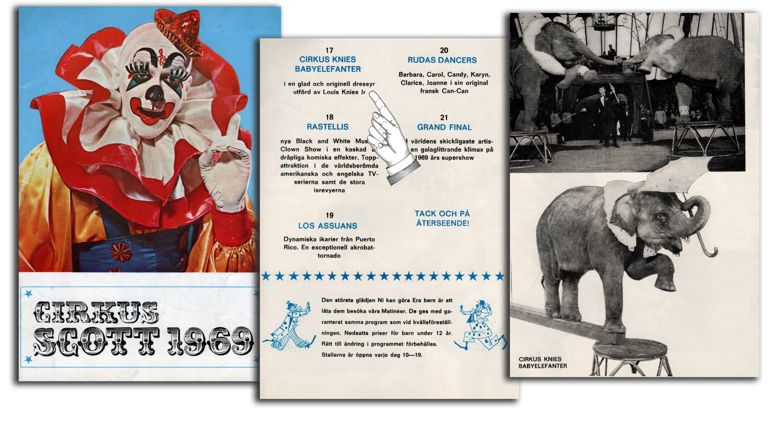 Louis Knie gastiert mit Baby-Elefanten und Exoten beim Circus SCOTT in Schweden; ein gewisser Kurt Jäger führt Freiheitsdressuren von KNIE vor.