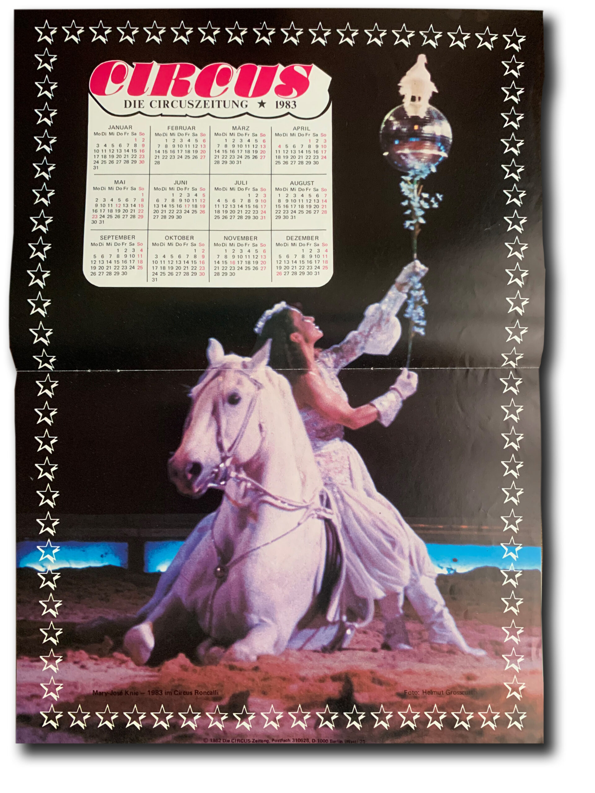 Zu Ehren von Mary-José ziert sie den Jahreskalender der deutschen «Die Circuszeitung» für 1983; Foto Helmut Grosscurth